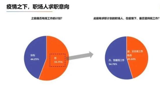 从以上数据去看,超半数的职场人有想要换工作的想法,而疫情是导致大家暂缓找工作的原因,也就是说: