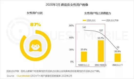 直播卖货对女性受众的转化效率高。比如,手机淘宝直播的女性用户占55%,其支付率高达68.8%,相比之下,全体手机淘宝用户的平均支付率为56.8%;以直播为主要特色的蘑菇街,女性用户占比87%,线上消费能力在200元以下的仅占20.8%。