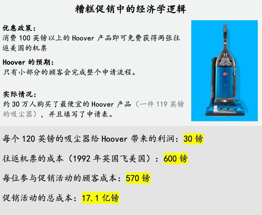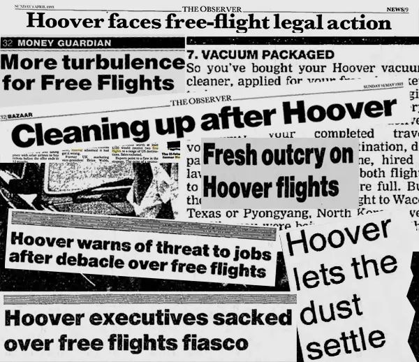 1992年底,吸尘器制造商Hoover的英国分公司提供了一次百年一遇的甜蜜促销:如果客户购买了任何单价超过100英镑的产品,就将免费获得两张往返美国的机票。