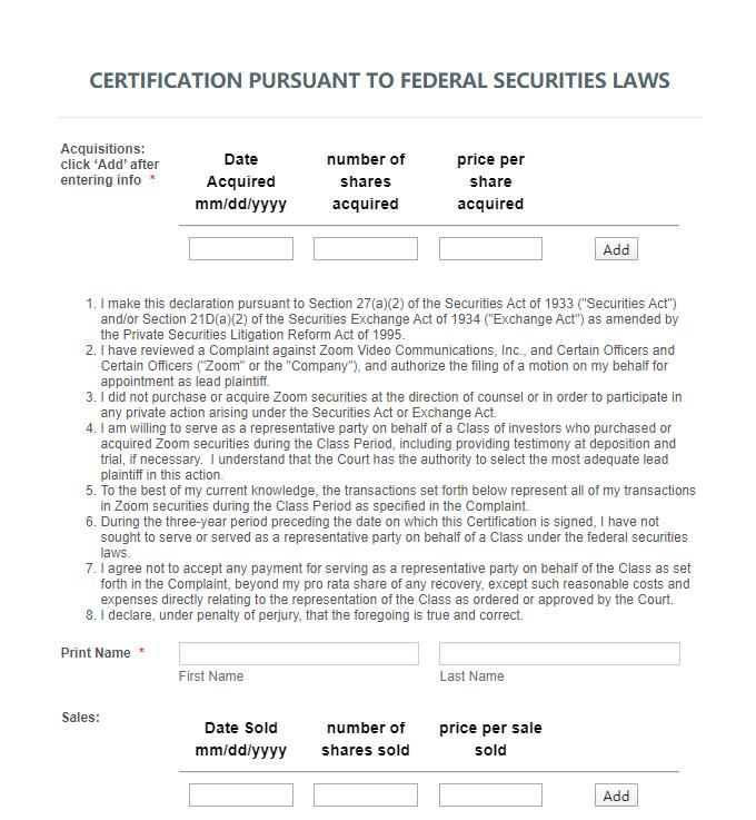 律所公告中称:将以 Zoom 违反联邦证券法所造成的损害,并寻求根据《联邦证券法》第10(b)和20(a)条采取的补救措施1934年《证券交易法》(以下简称“交易法”)和根据该法颁布的第10b-5条,来寻求 Zoom 的赔偿。