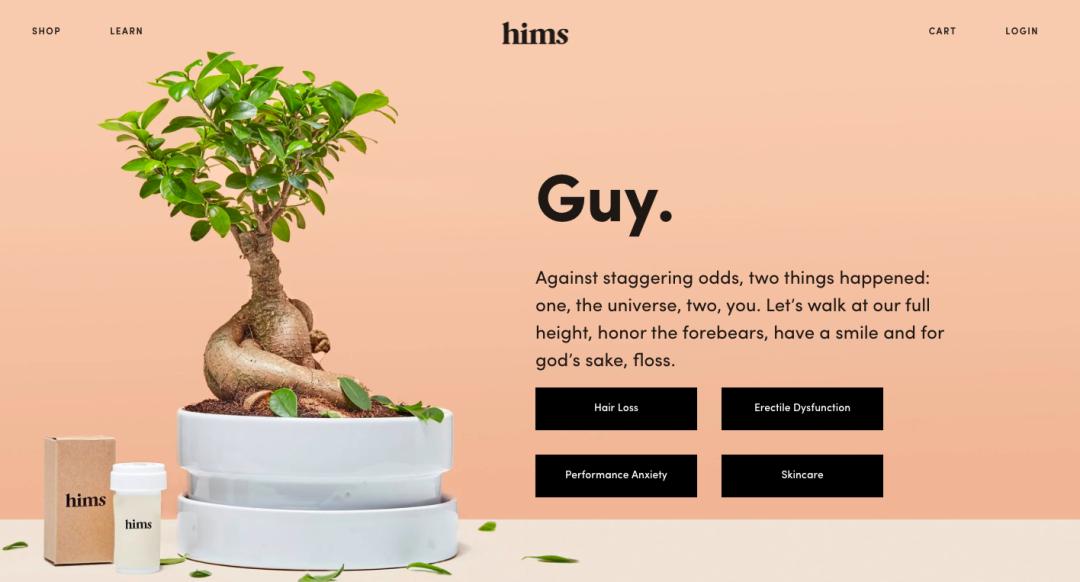 与Hims的网页、广告设计的时尚感不同,Hims瞄准的市场并不新颖,其业务主要集中在男性脱发、皮肤护理和性功能障碍。这些问题长期困扰着大量男性,但许多人对此难以启齿。