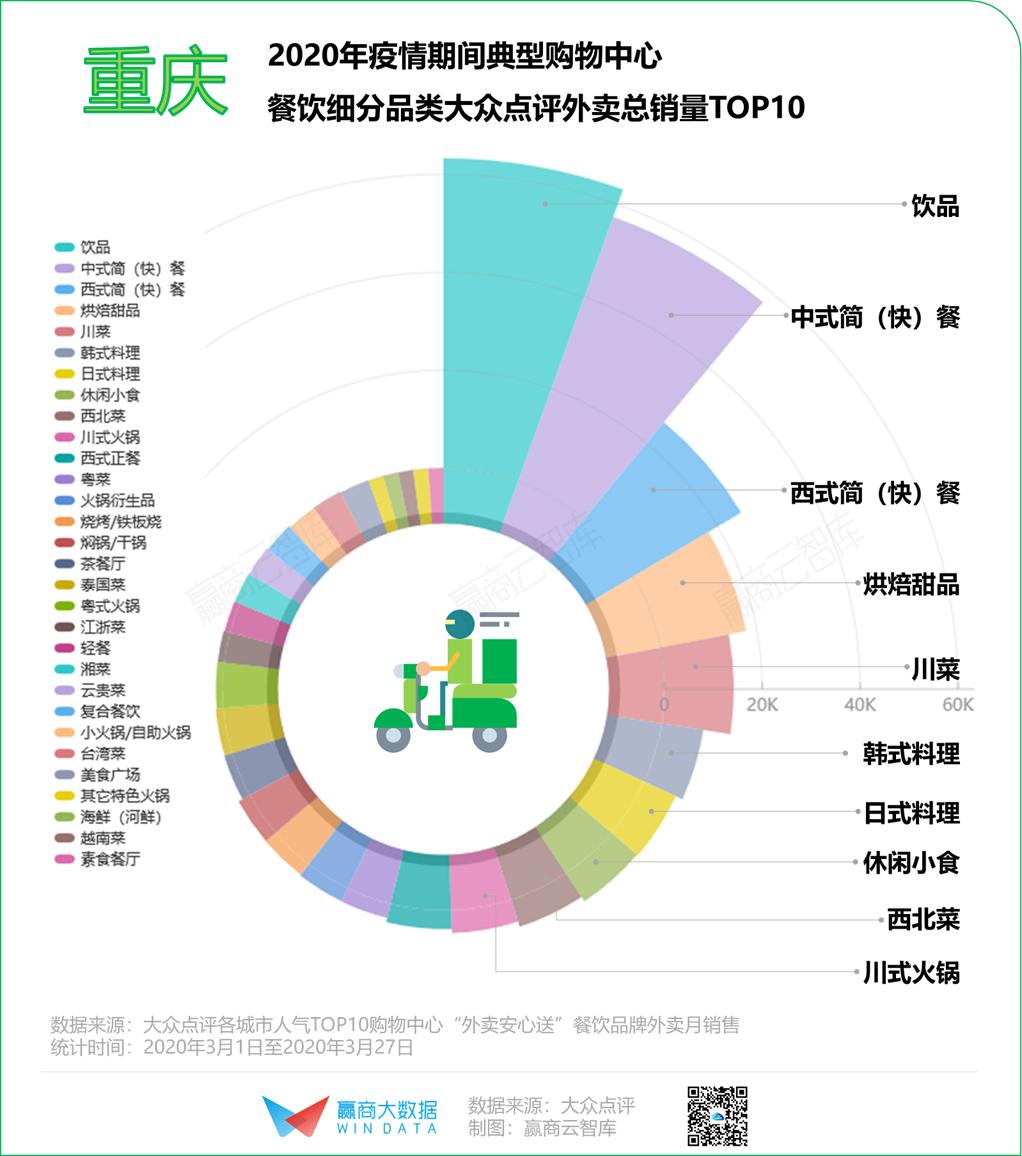 封城的日子更爱饮品、日料:武汉在疫情期间的防控措施格外严谨,整体的外卖销量偏低;加速进驻的网红饮品挑起了武汉人民的“茶饮欲望”,在订单排行中亦能有所体现。另外,日式料理的消费频次偏高,这种“治愈系的”健康简餐,更适合武汉人的中国胃。