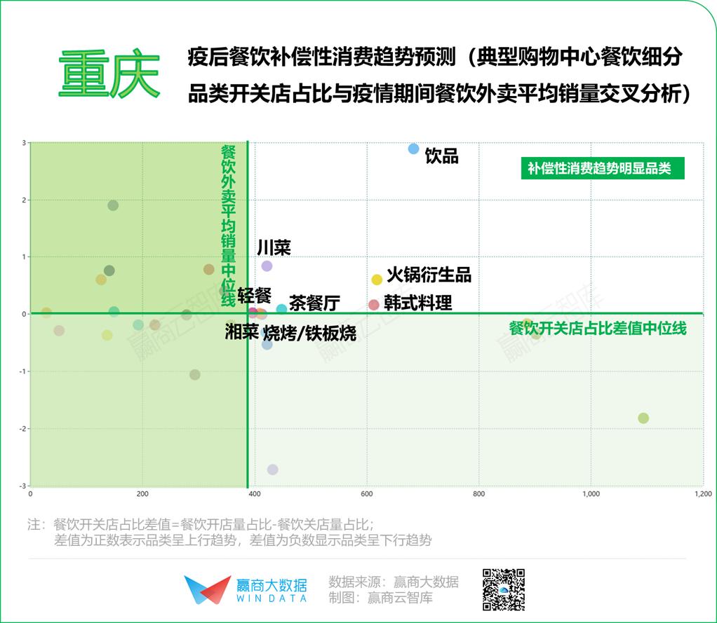 社交属性强的火锅,外卖销量不高:疫情期间,购物中心餐饮转向外卖渠道,中式餐饮销量居首,其次是休闲餐饮、异国风情餐饮。社交属性较强的火锅,与外卖便捷就餐的场景匹配度不高,销量相对较低,这也意味着火锅堂食恢复相对较快,未来“补偿性消费”趋势最为明显。