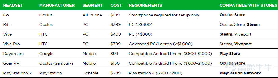 其他厂商的价格虽然有所下降,但是依旧需要玩家们掂量一下。常见的VR设备,会根据不同的适配平台标准,价格从便宜的100刀到贵的800刀不等:入门级有三星GearVR、Facebook的Oculus GO;基础级有PSVR,多合一头显Oculus Quest;高端头显则面向追求高保真游戏体验的用户,有V社的Index以及HTC Vive Cosmos。总体而言,单就VR设备,想要玩Alyx,基准也要花费千元左右。