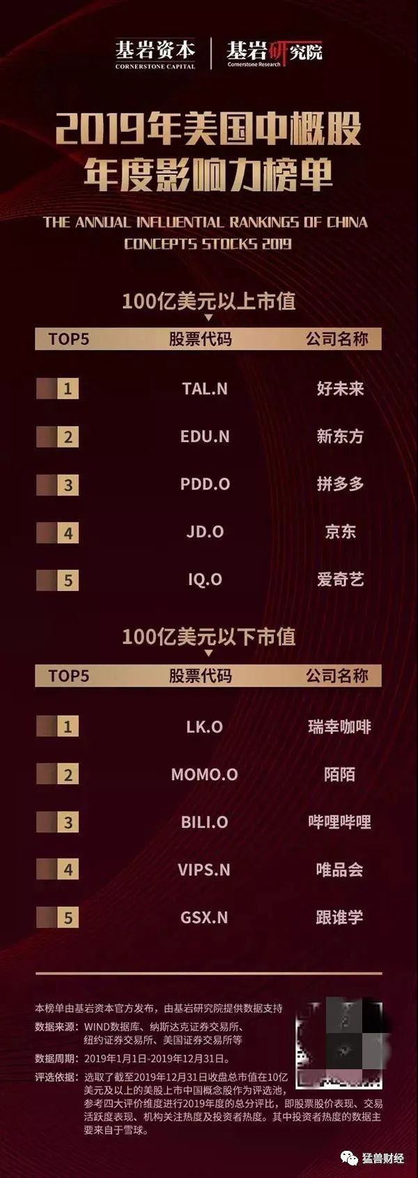 基岩资本专注于全球新兴领域的价值投资,投资阶段横跨早中晚期,行业覆盖TMT、生物医药、节能环保等多个领域。在基岩资本公开的“2019年美国中概股年度影响力榜单”里,有包括B站这样风评较好、从未被做空的公司,也有瑞幸、好未来、跟谁学这样遭到国外机构做空、身陷负面的中概股公司。