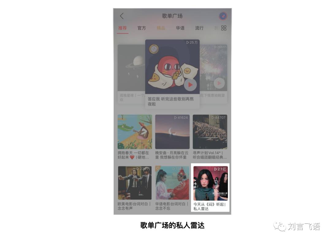 其一,对用户的容错率高。歌单的 30 首歌里有 20 首满意也可以接受。但歌曲推荐不成功,用户就对功能失望。电台处于二者之间,用户对无预期的播放列表,容错率也不是很高。