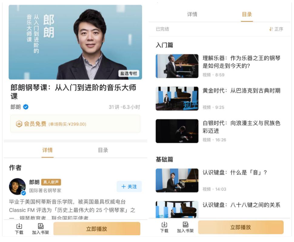 而沉浸在社区内与用户互动,评论、提问等反馈都能给创作者带来更多的方向指导。去年知乎和郎朗推出了一份付费钢琴课,从选题策划到内容大纲,他们都参考了知乎社区内用户在钢琴领域最关心的提问。而郎朗本身也是知乎的用户。