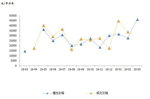 2019年3月~2020年3月北京住宅用地供求变化数据来源:CREIS中指数据