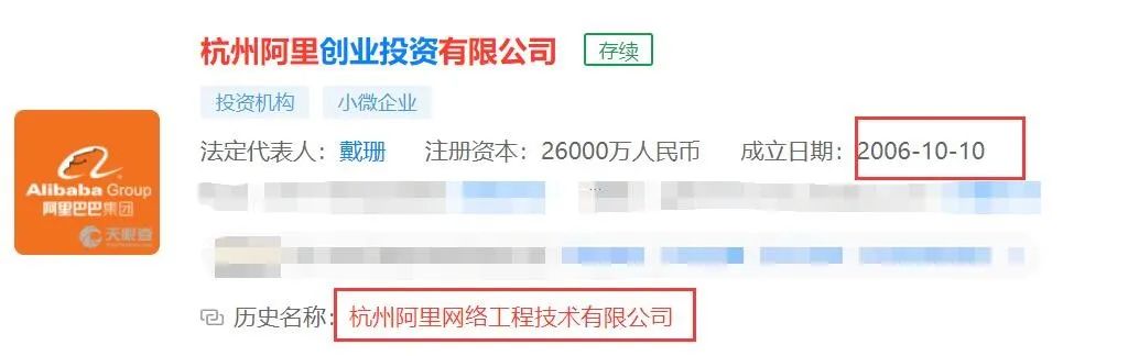 天眼查信息显示,阿里创投成立于2006年10月,注册资本2.6亿,前身为杭州阿里网络工程技术有限公司,2008年变更为阿里创投。此外,阿里创投法人几经变更,马云、陆兆禧(2014年)、张勇(2016年),2019年3月,阿里创投再度变更工商信息,阿里巴巴B2B事业群总裁戴珊接任法人和董事长。