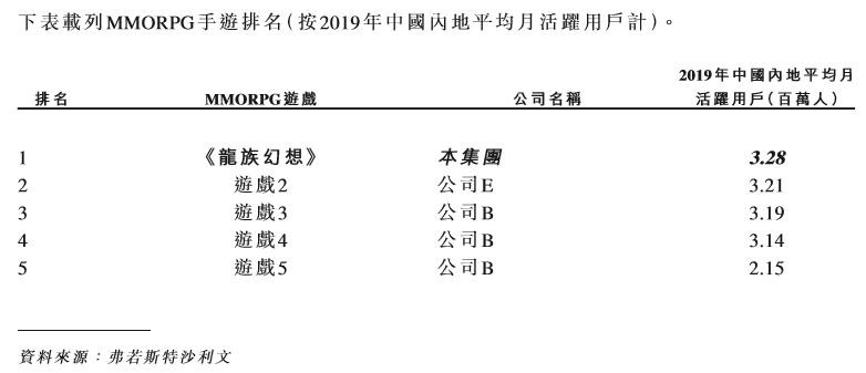 2019年《龙族幻想》以328万的平均月活用户数高居第一,排名第二的游戏,鉴于招股书提供的信息很少,葡萄君猜测可能是《神武4》(同样欢迎读者在评论区发表自己的观点)。