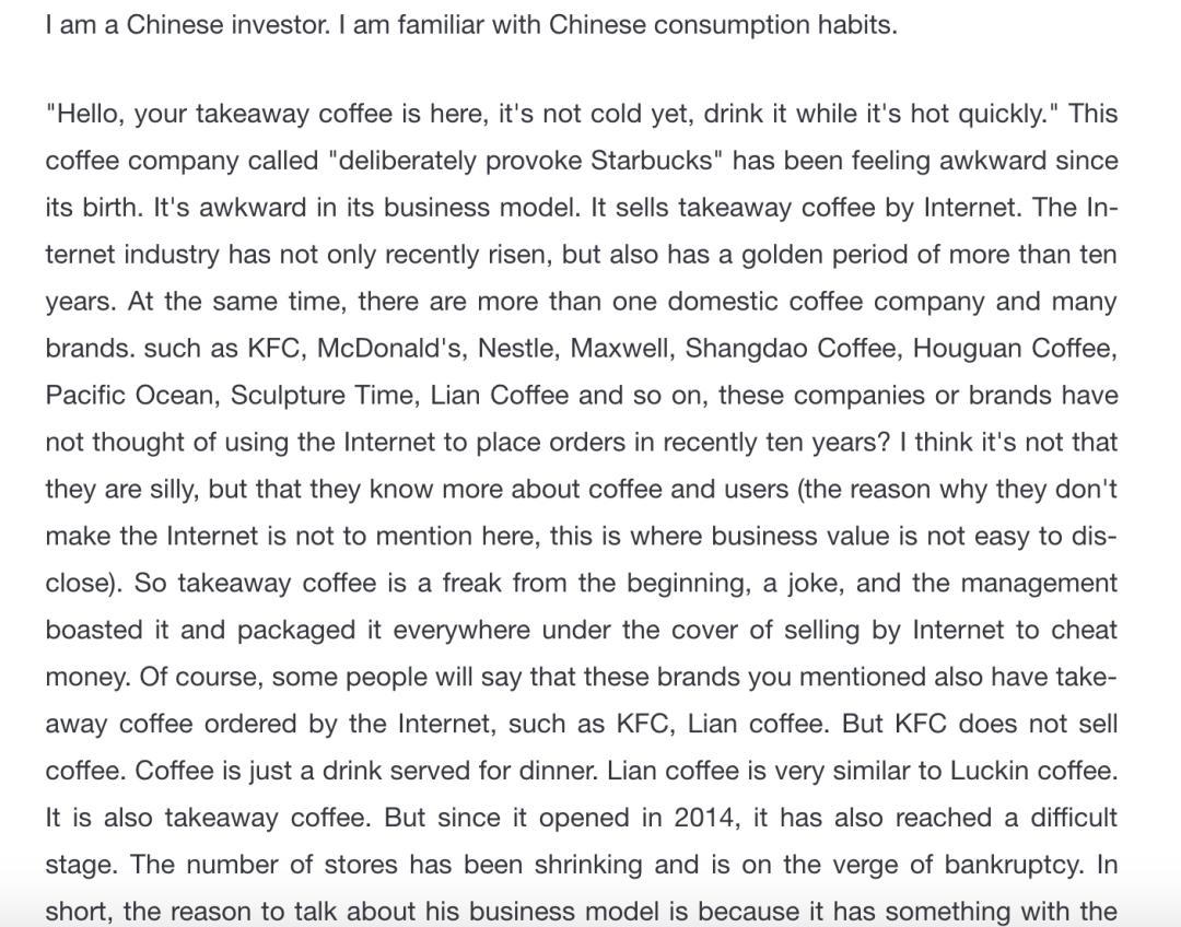 不过,严峰并没有打消自己的判断的念头,等候数月没收到美国证监会回应后,他开始调查起了瑞幸咖啡。