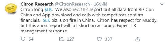 与此同时,另一家做空机构香橼公开表示,与浑水同样收到了相同匿名报告,但确认瑞幸在中国的发展真实,并且认为做空报告非常不准确。