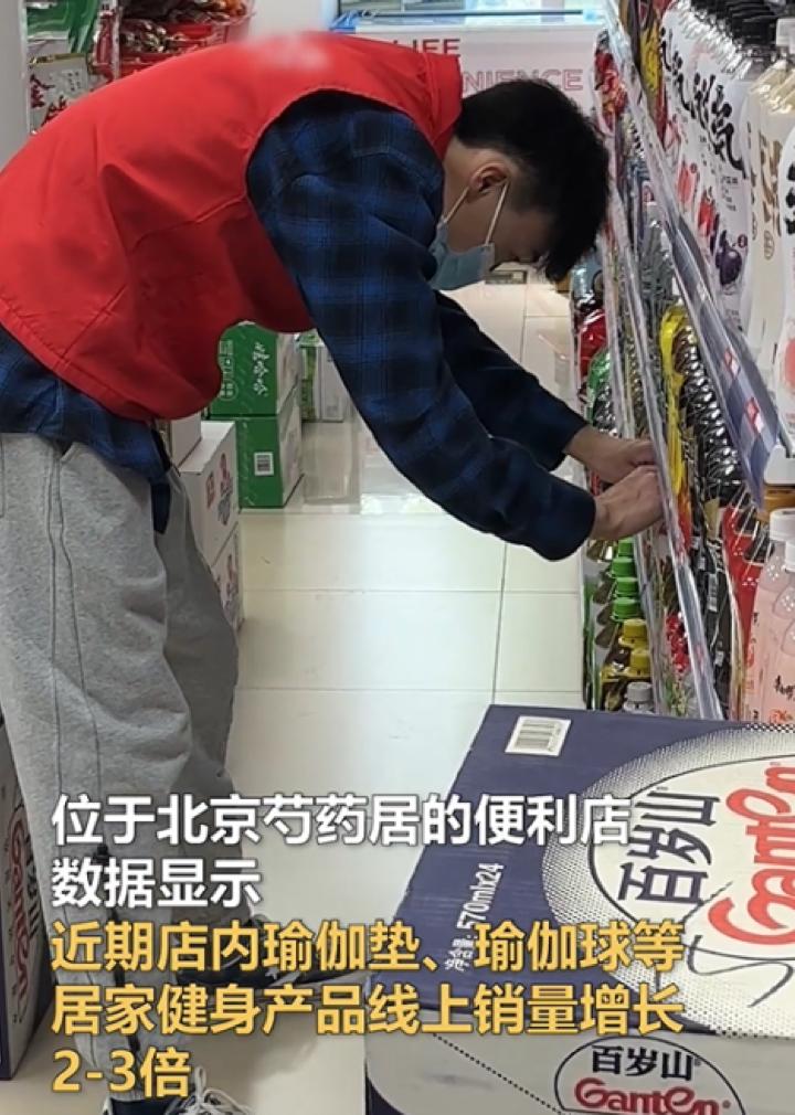 北京某便利店瑜伽垫等健身用品线上销量翻三倍 (图源:@白鹿视频微博)