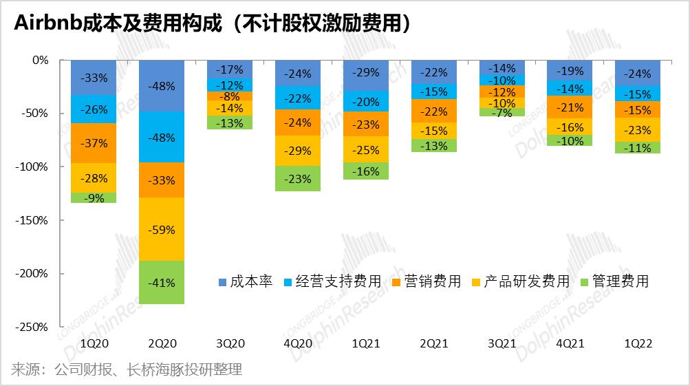 由于Airbnb上市尚不久,历史上有规模不小且波动较大的股价激励费用支出,因此我们在看成本和费用时采取剔除股权激励费用的口径,从而更好的体现公司费用的变动趋势。