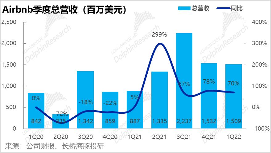 1. 无惧疫情和乌东问题,业务增长强劲:一季度公司房屋预订总额达172亿元,超出市场预期8%,同比增速高达67%,相较19年同期也增长73%,国外出行和住宿的强劲复苏可见一斑,1-2月的omicron疫情和乌东危机也不能阻碍。