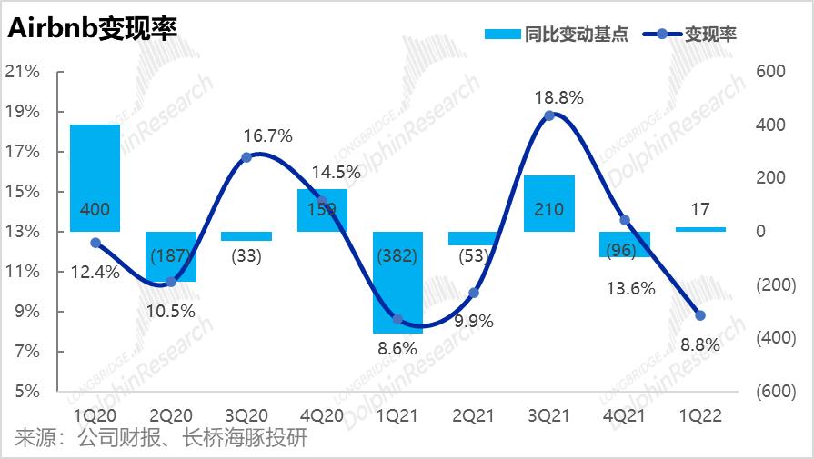 首先,公司一季度房屋出租预订总金额为172亿美元,比市场预期的159亿高出8%,可见虽受1-2新冠omicron和乌克兰局势影响,欧美的出行解禁和恢复势头依旧强劲。本季预订总额同比增速高达67%, 相交 2019年同期也增长了73%。