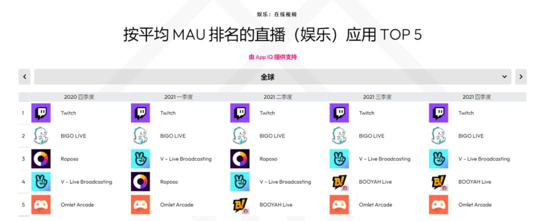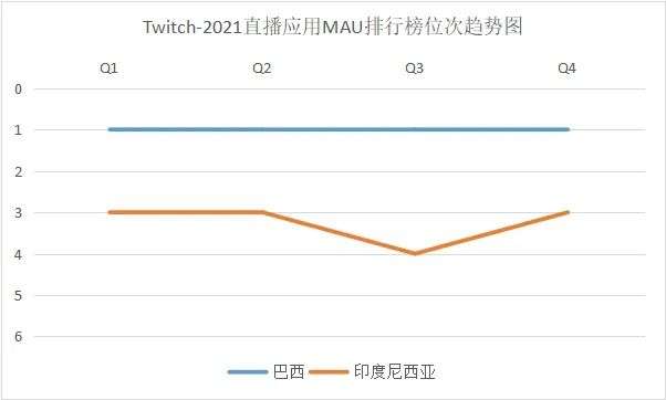 MAU 排行榜的第 1 位(数据来源:Data.ai) 2021 年 Q1-Q4,Twitch 稳居巴西