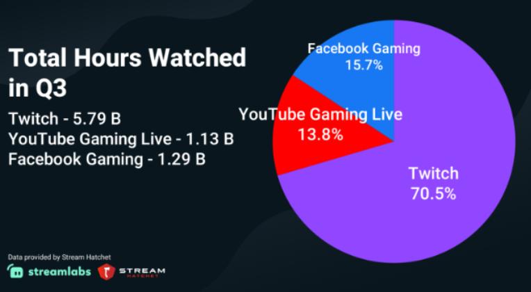 放眼海外游戏直播市场,Twitch、YouTube Gaming 和 Facebook Gaming 等 3 个头部玩家几乎占据了多数份额,留给中小直播平台的生存空间非常有限。与此同时,头部玩家之间的差距也在逐渐拉开,剩下的厂商要想突围也是困难重重。根据 Streamlabs 和 Stream Hatchet 发布的报告,2021 年 Q3,Twitch 的累计观看时长达到了 57.9 亿小时,而 YouTube Gaming 和 Facebook Gaming 中这一数字分别是 11.3 亿小时和 12.9 亿小时,前者占据了头部游戏直播市场 70.5% 的市场份额。Twitch 的遥遥领先,无形中拉低了余下厂商增长的天花板。