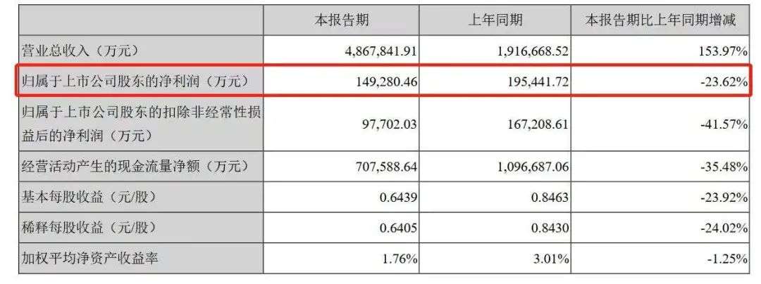 财报数据显示,本季度宁德时代营收486.78亿元,同比增长153.97%;归属于上市公司股东的净利润14.93亿元,同比下跌23.62%。