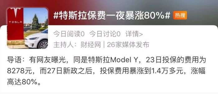 为了消除消费者们的疑虑,中国保险行业协会在2021年12月31日,发布了《新能源汽车商业保险专属条款(试行)》,数百万新能源车正式进入专属保险时代。在保险责任上,专属保险不仅为“三电”(电池、电机和电控)系统提供保障,更是对新能源汽车行驶、停放、充电及作业的使用场景进行全面涵盖。 然而在新能源专属险上线后,小道哥就听到了公司同事的吐槽,原因是自己所购买的新能源车险保费大幅上调,同事还表示:“省下的那点油费全贴给了保费”!从各大媒体报道来看,自2021年12月汽车保险改革以来,不同品牌的车型保费均呈现了不同程度的涨幅。其中上浮比例最大的仍然是特斯拉,2022年车辆续保保费的最高涨幅甚至达到了80%,相关新闻一度冲上热搜。