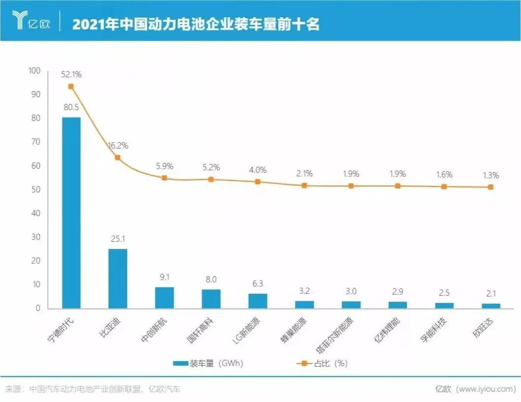 相关数据显示,宁德时代的国内市占率从四季度的54%下滑至50%,市场份额主要被比亚迪抢占。值得一提的是,宁德时代的装机量跑输行业增速。2022年第一季度,我国动力电池累计装车量51.3Gwh,同比累计上升120.7%,而公司国内动力电池装机25.5GWh,同比增109%。