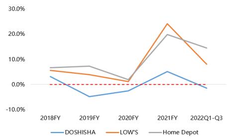 在日本市场,大客户DOSHISHA超90%的置物架采购自美之高,采购份额的提升空间几乎见顶。另一方面,从客户的经营表现来看,若剔除疫情带来的行业利好,DOSHISHA的营收增速逐年疲软,由此可见,日本市场对置物架需求明显不足。故而,美之高在日本市场的增长空间极为有限。
