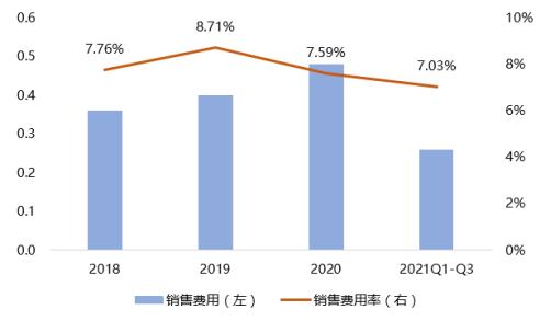 图五:2018-2021Q3美之高销售费用情况 公司财报 36氪整理