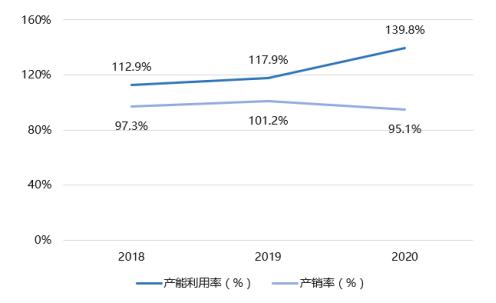从经营情况来看,在需求端,公司近年来的产销率接近饱和,截止2020年底的境外在手订单额同比大幅上升387.4%;在供给端,公司的产能溢出,近三年的产能利用率均高于100%。