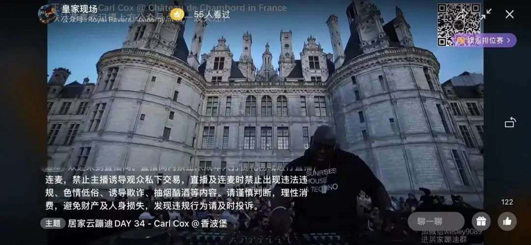 卫斯理运营着自己的视频号“皇家现场”和公众号“Royal Ravers Academy”。他是上海的一名白领,喜欢电音,居家期间,他看到数次延期的Ultra电音节和Coachella音乐节在美国重启,便开始直播相关内容。