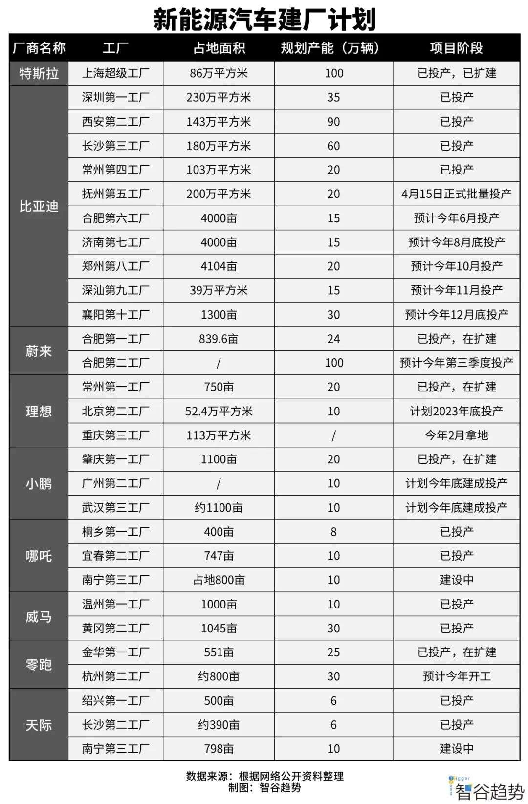 再看看各大新能源车厂的产能扩建计划: