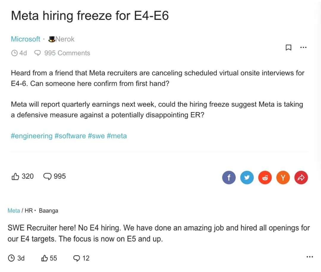 即便Meta即将裁员的消息不属实,但部分职级招聘暂停、员工的绿卡申请等问题却是确实存在的。