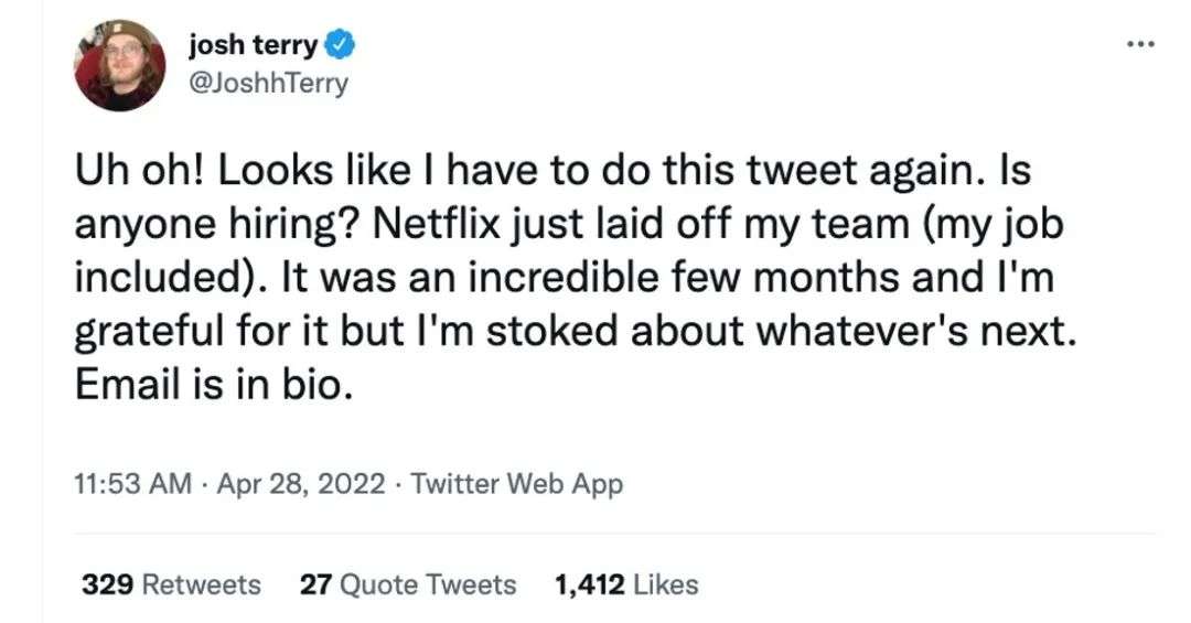 但在最近Netflix连续两个季度的拉垮业绩表现,股价已经一夜回到4年前的情形下,这个新项目似乎也成为了Netflix的开刀对象。最近,有Tudum的员工表示,自己以及自己所在的编辑团队已经被Netflix全员解雇,被裁员的员工并没有事先收到通知,很多其他员工是通过推特才知道自己的同事遭到了解雇。