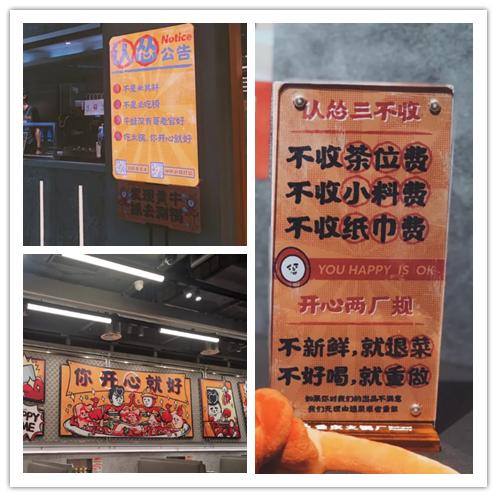 “认怂公告”自曝其短,“认怂三不收”“开心两厂规”,还有餐具、员工服饰上“你说的都对,你开心就好”,将门店产品及服务,用带点自嘲的意味说出来,反而有了话题性和记忆点。