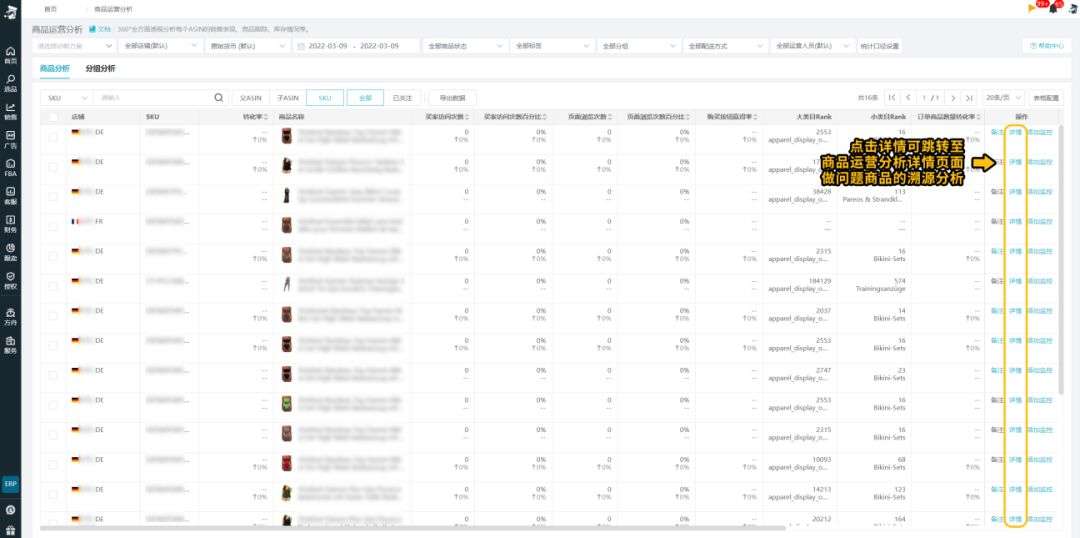 4. 点击详情可跳转至商品运营分析详情页面,深度解析商品问题