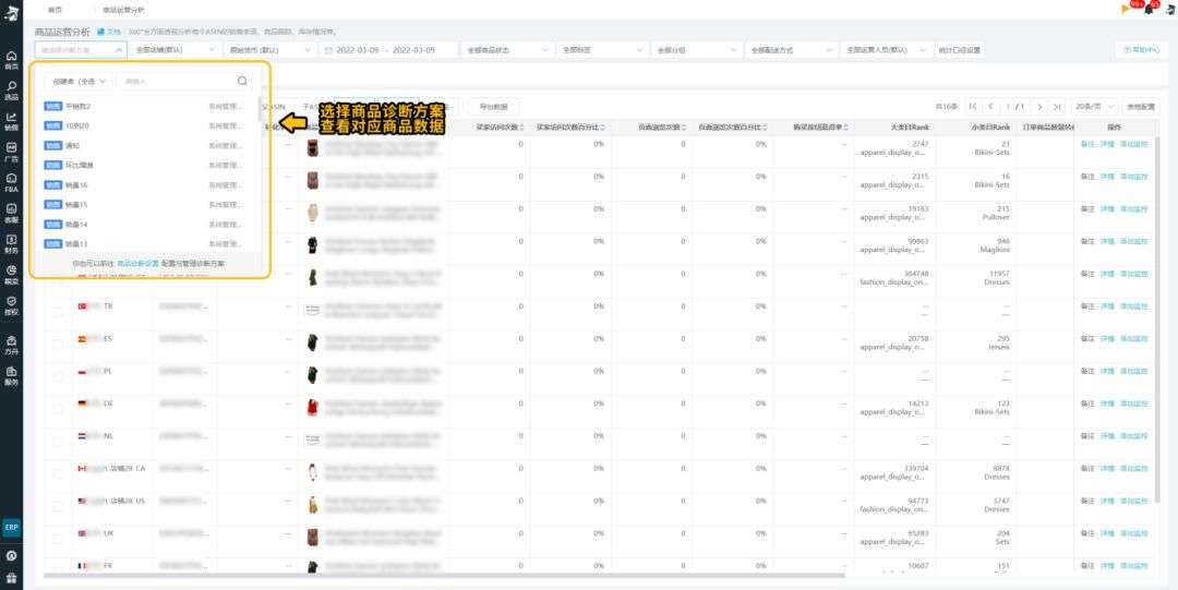 3. 选择商品诊断方案查看对应商品数据