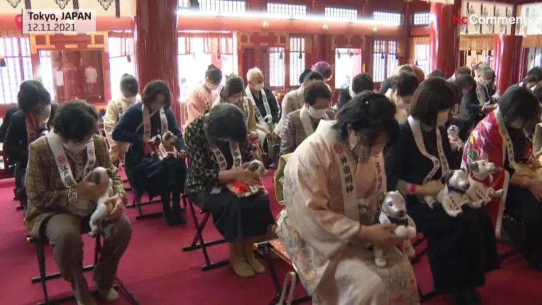 唯一不同的是:参拜者们带来的,不是真的孩子,而是索尼 Aibo 机器狗。