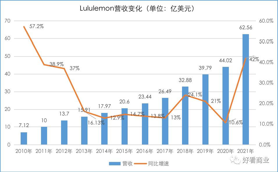 靠瑜伽服起家的Lululemon也在资本市场创造了神话:2007年上市时市值16亿美元;2021年11月,总市值一度超过620亿美元。