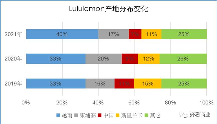 2017年起,Lululemon开始着手分散供应链风险,包括增加供应商数量、降低对单个供应商的依赖,以及将生产制造布局在全球多地。