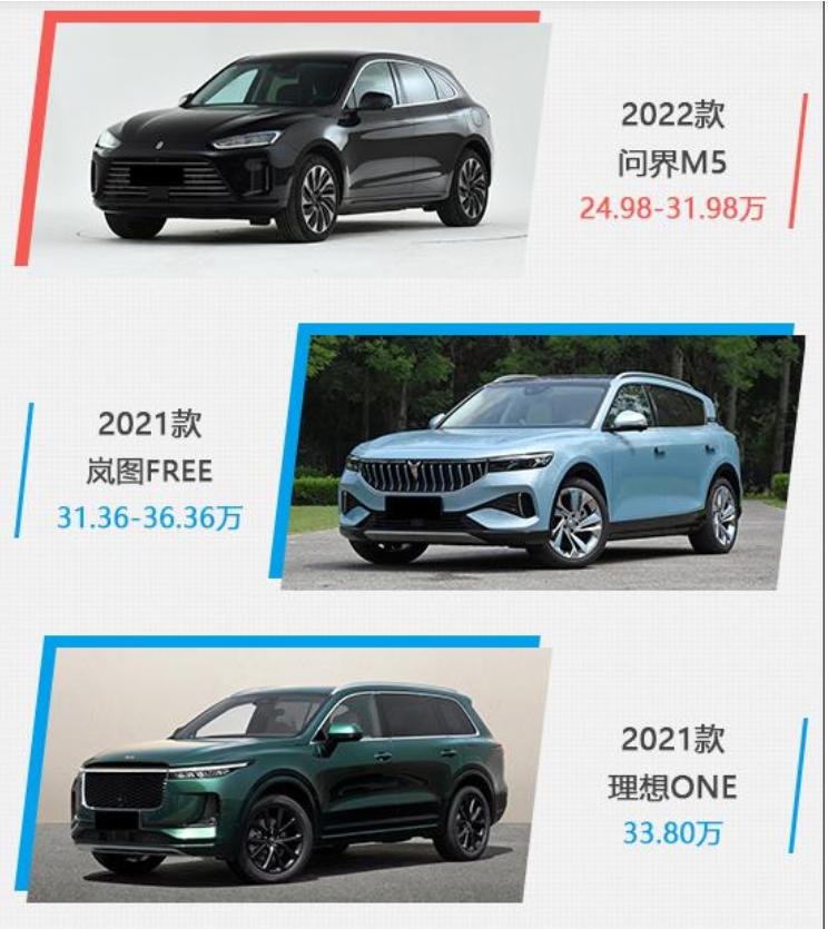 问界M5的主要竞争对手,是售价相似的理想one和岚图free四驱增程版,与问界M5一样,这两款车同样采用了增程式混动,而且都属于中大型SUV。同这两款车的比较上,可以看出问界M5的优势与短板。
