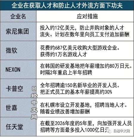 日本的游戏企业也在推进改善开发人员的待遇和争夺人才。