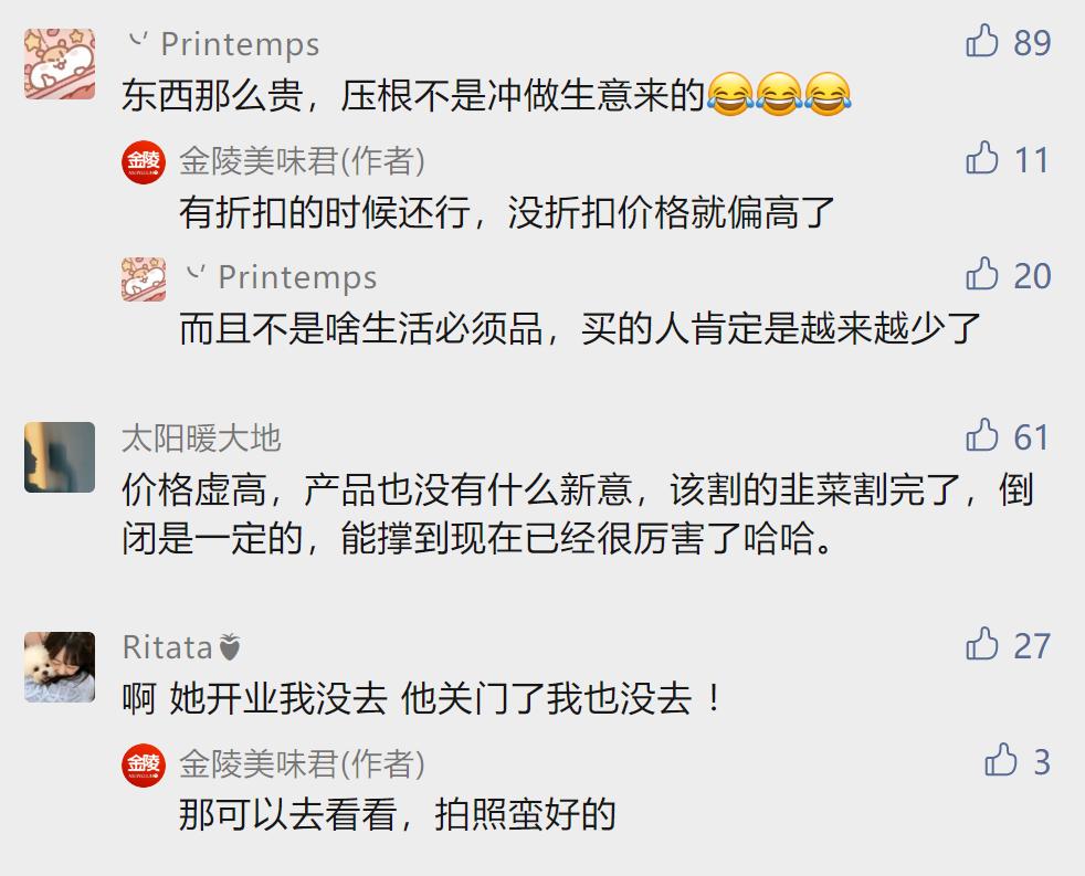 Line Friends在影响力输给上述题材但价格相同的情况下,吸引力便会大打折扣。从南京闭店时网友的评论,其实就能发现这一问题: