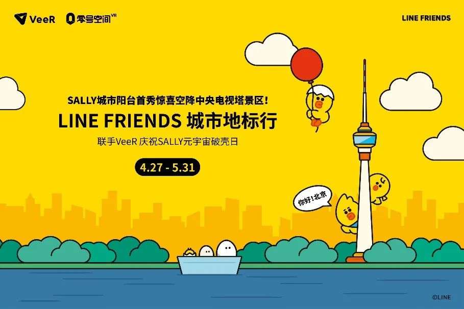 就在SALLY莎莉生日系列数字藏品发行的同期,Line Friends与VR沉浸娱乐平台VeeR联合打造了“SALLY破壳日限定快闪VR空间”,于4月27日至29日在北京中央电视塔景区19层限时开启。