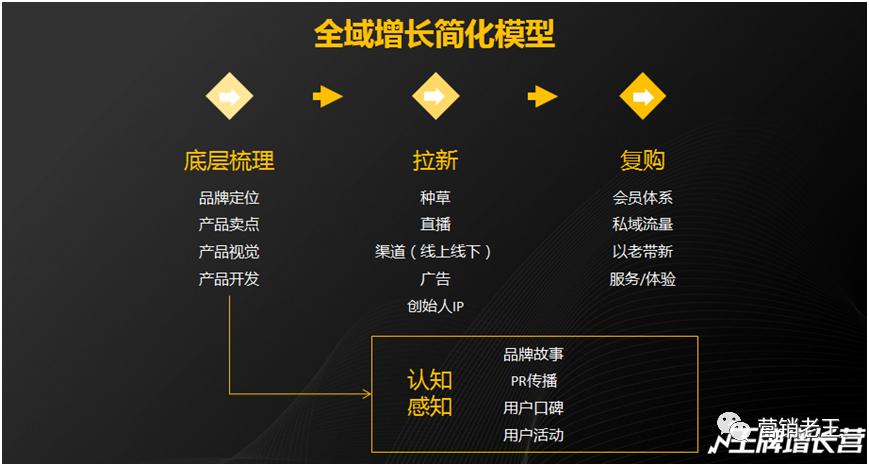 品牌要增长,要盈利,核心就2点,拉新+复购。这里,我给出一个简化的全域增长模型:
