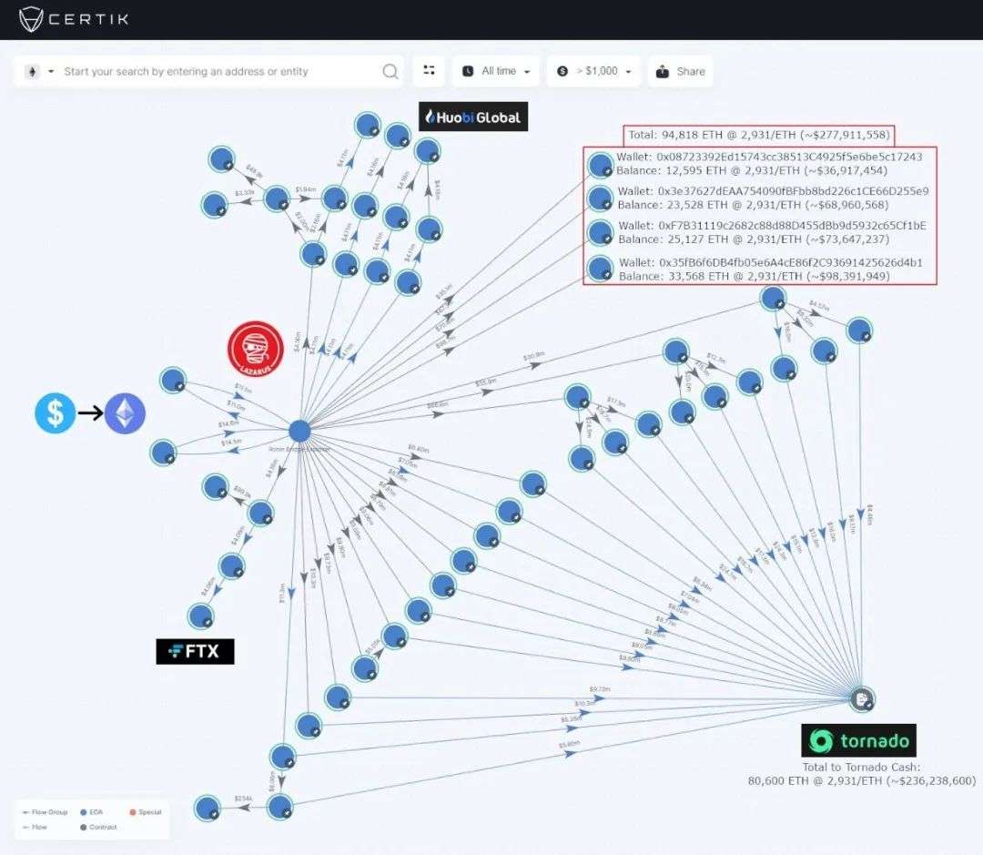 CertiK 利用 SkyTrace 生成的最新被盗资金流向图。| 来源:Twitter 账号 @CertiKAlert