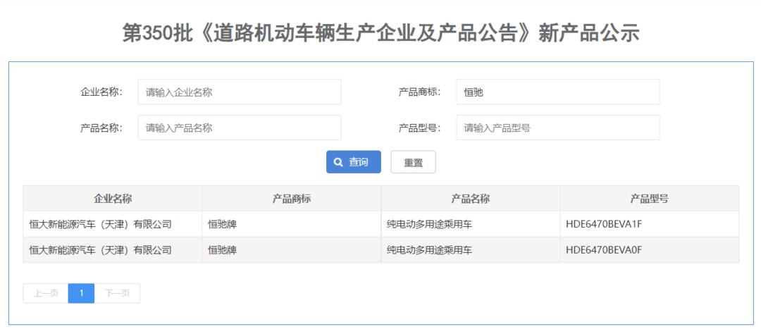 恒驰5出现在工信部新车公示中,截图自国家工信部官网