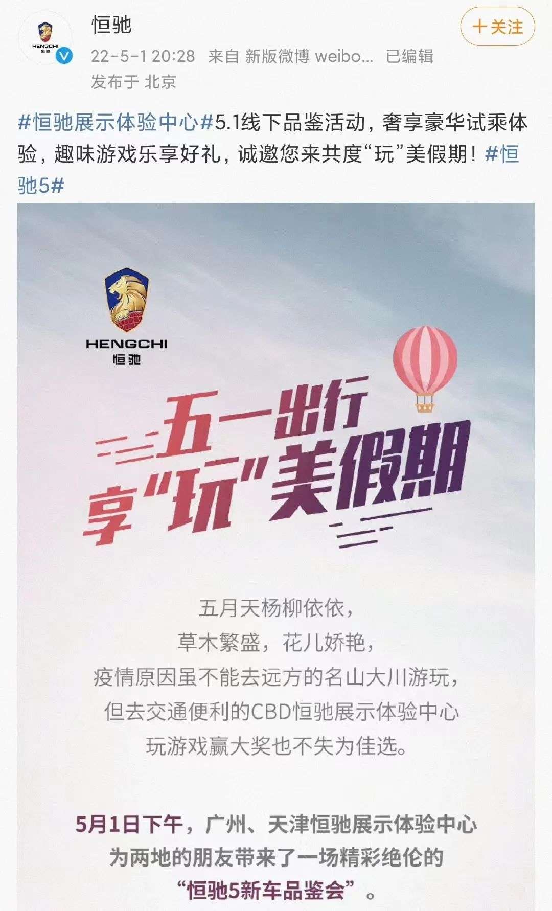 时间来到今年“五一”期间,就在恒驰开启代理商招募的同时,其在广州和天津体验中心也举办了恒驰5的静态体验会,这也是恒驰5量产车下线后,首次在线下向公众亮相。