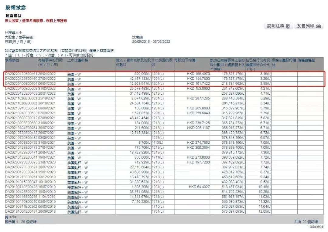 ▲ 红杉中国在美团持股变化情况。来源:港交所网站