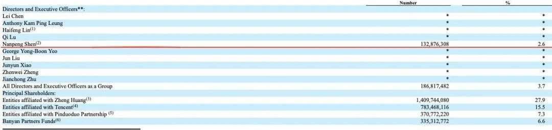 ▲ 拼多多2020年股东持股情况。来源:拼多多2020年年报