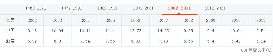 2022-2011年中越两国GDP年增长率对比 新浪财经截图