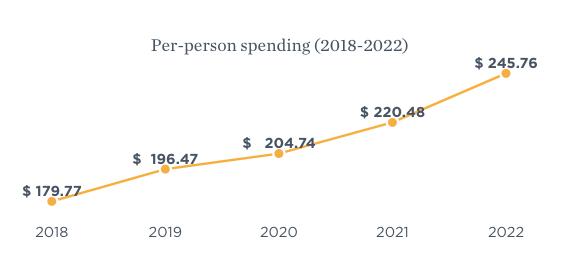 统计显示,2021年美国消费者在母亲节的平均花费约为220.48美元。今年,大约84%的美国成年人会过母亲节,每个消费者的预算增加了25美元,总预算超过245.76美元,创下历史新高。